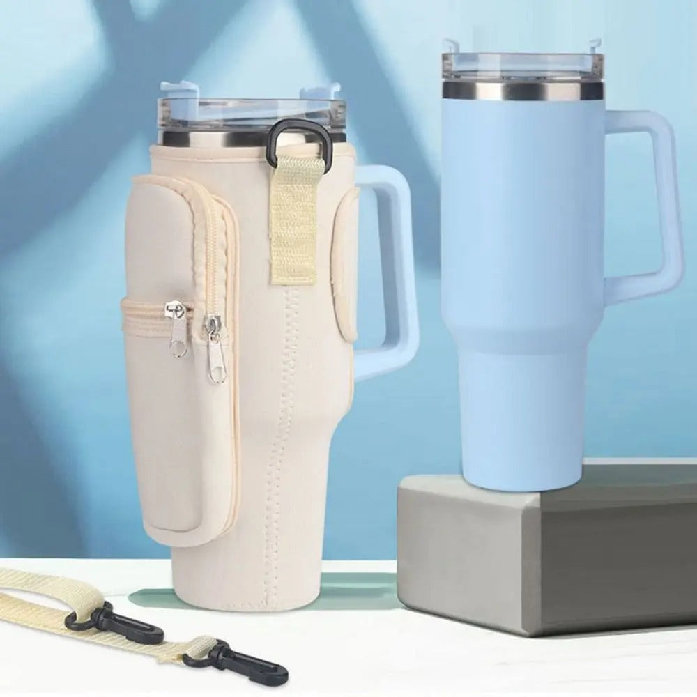 Conveniência e Proteção - Bolsa Suporte para Copo de Água com Alça de Ombro.